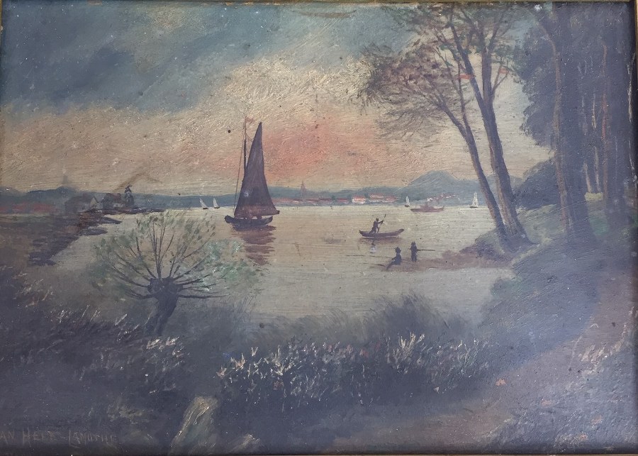 Huile sur carton ''vue d' un lac'' signé Jean Held Lamothe. Et une aquarelle '' chaumière''.