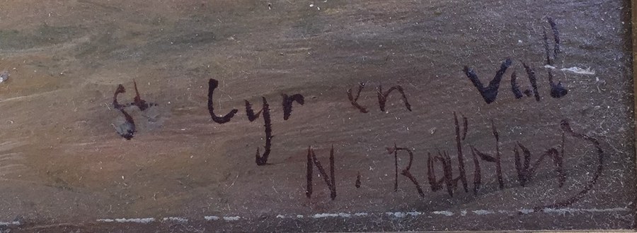 Huile sur panneau ''vue de village'' Saint Lyr en Val 1880 N. Rablens.