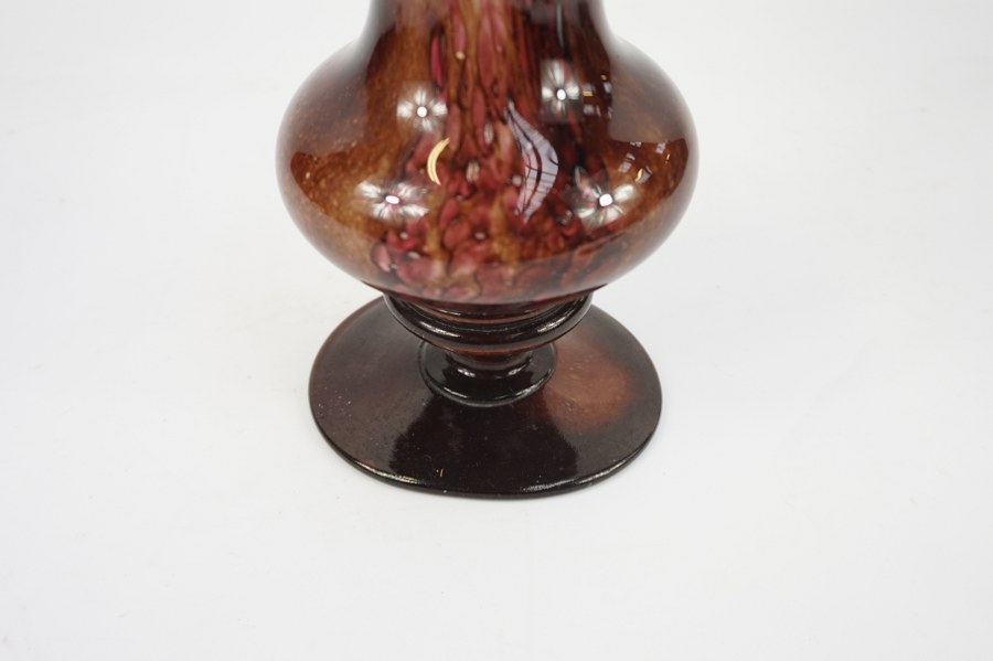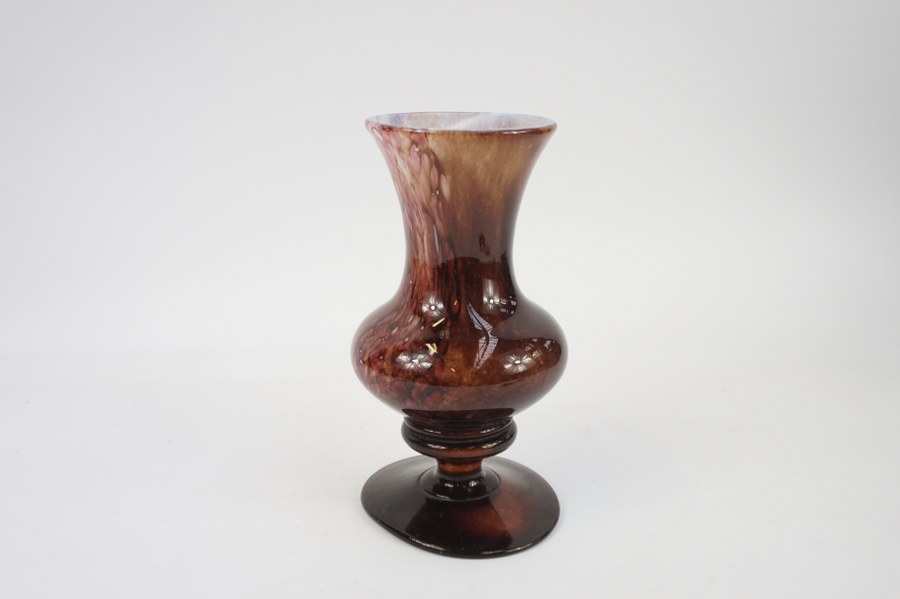 Vase balustre en verre sur piédouche. Hauteur : 23 cm.