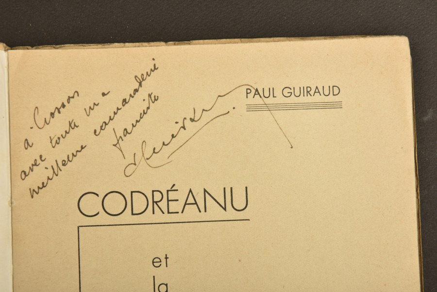 Ensemble de documents et livre période Occupation. Ensemble comprenant 7 tracts, une affiche et un livre sur la période de l'Occupation. Bajus rentre à paris 14 pages, anti anglais 10 pages, un bon français 15 pages, Le Romancero du marquis de Canada Hermosa 14 pages, Bobards Boniments Corporation 14 pages, Les bruits et prophéties 15 pages, Les Attentistes 15 pages, une affiche Françaises et Français format 40x48 cm possédant plusieurs déchirures , livre Codréanu et la garde de Fer dédicacé à Georges C. Etat II+. Photos supplémentaires sur www.aiolfi.com. Additional photos on www.aiolfi.com.