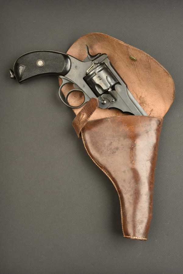 Pistolet MK V. Catégorie C9. Bronzage à 90%. Plaquettes en bakélite. Anneau de grenadière. Marquages Mark V, Webley Mark V patents 1914. Numéro 139587. Arme neutralisée aux nouvelles normes européenne par le Banc d'Epreuve de Saint Etienne. L'acquéreur d'une arme neutralisée classée en C9 outre la production d'une pièce d'identité en cours de validité (CNI, passeport, carte de résident) doit présenter soit l'original d'un certificat médical daté de moins de 1 mois attestant que l'état de santé physique et psychique du déclarant n’est pas incompatible avec le détention d'armes, soit la copie recto-verso du permis de chasse délivré en France ou à l'étranger accompagné d'un titre de validation de l'année en cours ou de l'année précédente et dans le cas des chasseurs avoir créé son compte détenteur dans le SIA, soit une copie recto-verso de la licence de tir d'une fédération sportive(tir ou ball-trap) en cours de validité assortie du tampon du médecin, soit la copie d'une carte de collectionneur d'armes. Dans tous les cas, si l'adresse de facturation est différente de celle figurant sur le titre d'identité envoyé, il faut joindre obligatoirement un justificatif de domicile de moins de 1 mois. La délivrance de l'arme n'aura lieu qu’après consultation du fichier FINIADA par un armurier. L'inscription de l'acheteur sur ce fichier entrainera automatiquement la nullité de la vente. Les formalités et la consultation du FINIADA seront facturées 60 € par arme achetée, sauf si un même acheteur est acquéreur de plusieurs armes. Etat II+. Plus de photos sur AIOLFI.COM, more photos on AIOLFI.COM.