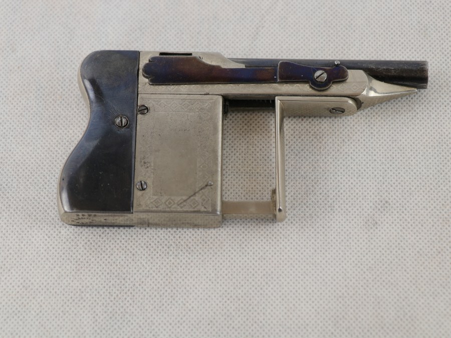 Rouchouse LE MERVEILLEUX . Calibre 8mmGaulois, même numéro, 2583. Bon nickelage. Plaquettes et canon métal en bleu . Mécanisme complètement fonctionnel. Très rare. Plus de photos sur AIOLFI.COM, more photos on AIOLFI.COM. Lors de l'achat, il faudra présenter une copie de la CNI, ainsi qu'un justificatif de domicile de moins de 3 mois.