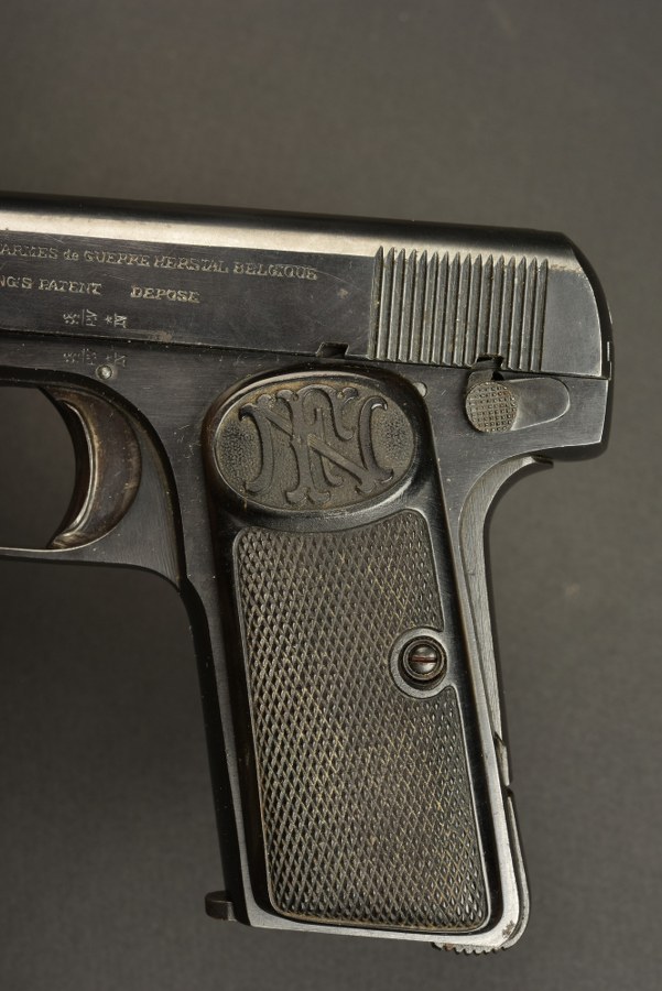 Pistolet Browning Catégorie B. Calibre 7,65, bronzage à 90%. Plaquettes en bakélite, chargeur présent. Fabrication Fabrique nationale d'armes de guerre de Herstal Belgique, numéro 329008. A noter une certaine usure et patine de la pièce. L'acquéreur d'une arme de catégorie B outre la production d'une pièce d'identité en cours de validité (CNI, passeport, carte de résident) doit présenter une copie recto/verso de la licence de tir en cours de validité (2021-2022) tamponnée par le médecin et l'original des deux volets de l'autorisation préfectorale de catégorie B. Dans tous les cas, si l'adresse de facturation est différente de celle figurant sur le titre d'identité envoyé, il faut joindre obligatoirement un justificatif de domicile de moins de 1 mois. La délivrance de l'arme n'aura lieu qu’après consultation du fichier FINIADA par un armurier. L'inscription de l'acheteur sur ce fichier entrainera automatiquement la nullité de la vente. Les formalités et la consultation du FINIADA seront facturées 60 € par arme achetée, sauf si un même acheteur, achète plusieurs armes. Pour les commandes d'armes de catégories B, l'envoi s'effectuera en deux parties séparées avec 24 heures d'intervalle au moins conformément à la législation en vigueur. Etat II+. Plus de photos sur AIOLFI.COM, more photos on AIOLFI.COM.