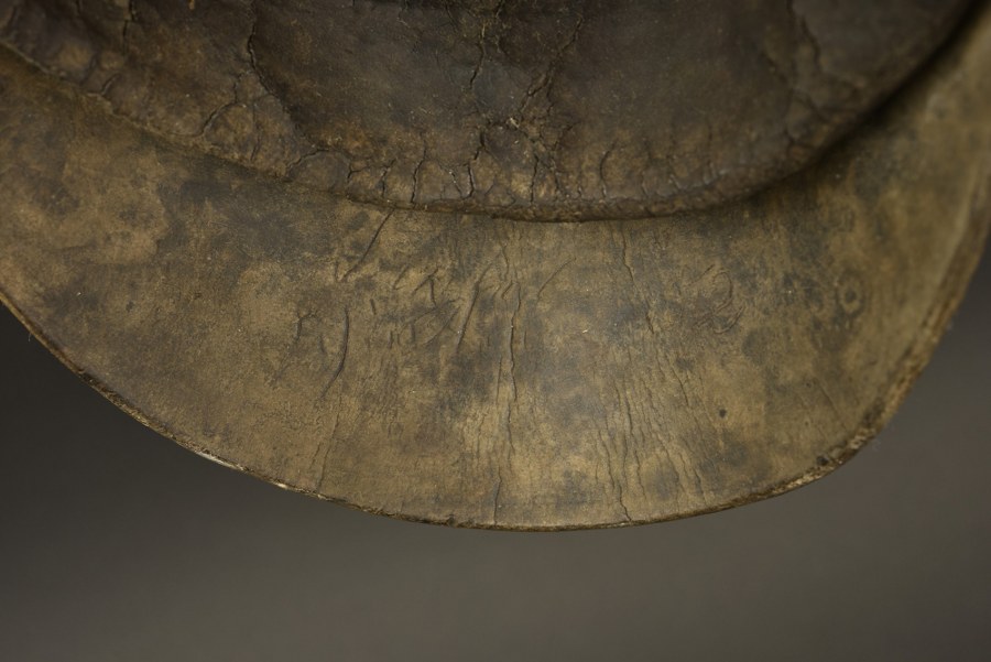 Relique de casque bavarois à chenille Raupenhelm modèle 1845. Coque de Raupenhelm bavarois modèle 1845 nue, sans garnitures. Coiffe présente mais en mauvais état. Un beau projet de restauration. Plus de photos sur WWW.AIOLFI.COM, more photos on WWW.AIOLFI.COM.