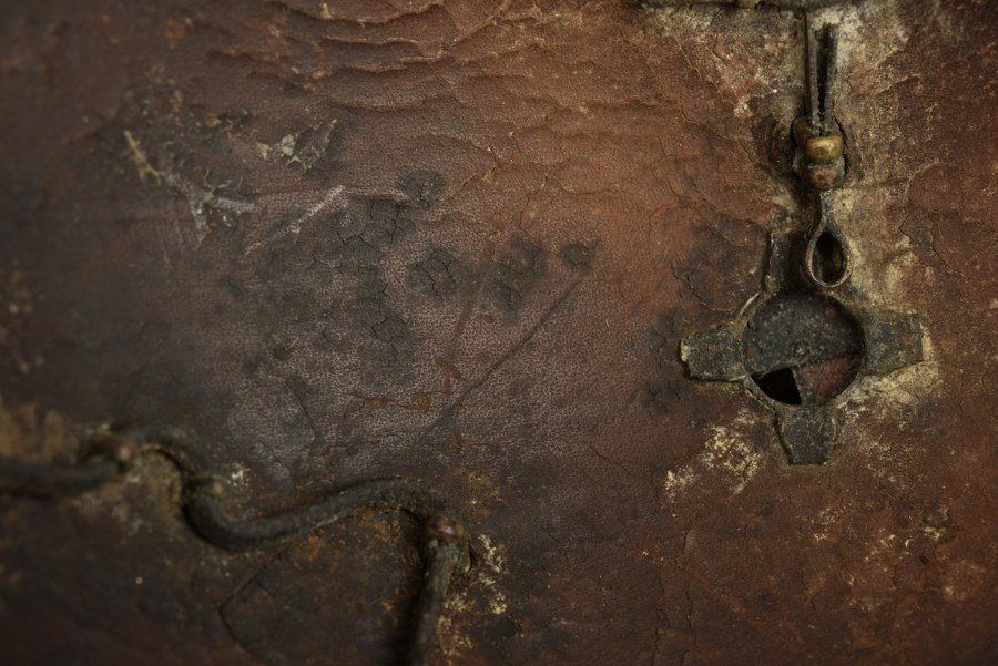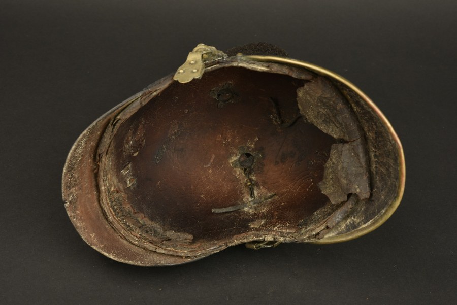 Casque bavarois à chenille Raupenhelm modèle 1868 d'infanterie légère. Casque à chenille bavarois modèle 1868 troupe, avec sa chenille et son plumet de couleur verte, passée, spécifique au Jäger et Schützen bavarois. Plaque au chiffre de Louis II de Bavière, cocarde latérale gauche. La chenille est à réparée, le plumet à consolider. Coiffe intérieur et jugulaire absente, un beau projet de restauration. Plus de photos sur WWW.AIOLFI.COM, more photos on WWW.AIOLFI.COM.