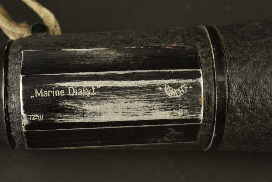 Monoculaire Reichmarine. Marquage Marine Diapyt 72511 DRP Hensoldt Wetzlar, optique laiteux. Dragonne en cuir. Etat II+. Plus de photos sur WWW.AIOLFI.COM, more photos on WWW.AIOLFI.COM.