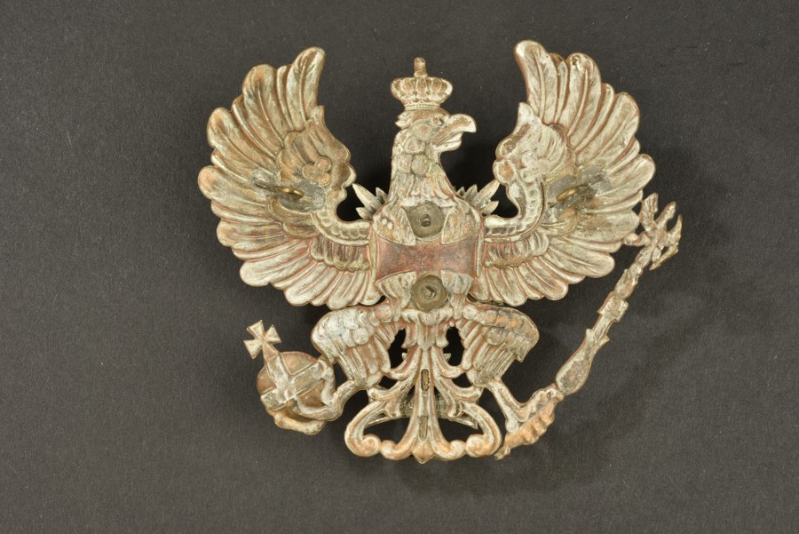 Plaque de casque à pointe 1895 troupe du Oldenburg. Plaque de casque à pointe troupe modèle 1895 d'un réserviste du Oldenburg. Aigle de réserviste sans devise, centre aux armes du Oldenburg en maillechort et petite croix de réserve König maillechort. Pontets soudés d'origine. Plus de photos sur WWW.AIOLFI.COM, more photos on WWW.AIOLFI.COM.