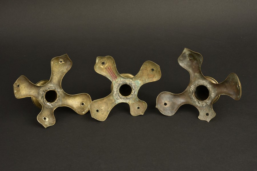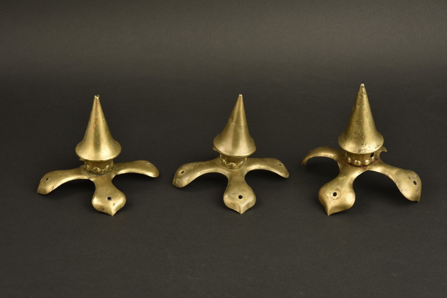 Ensemble de 3 pointes de casque modèle 18603 pointes avec Perlring sur embases en croix. Plus de photos sur WWW.AIOLFI.COM, more photos on WWW.AIOLFI.COM.