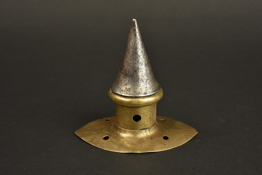 Pointe de casque de Cuirassier modèle 1889 et 1894Pointe fer amovible sur son embase laiton en forme de feuille. Modèle court pour casque de Kürassier modèle 1889 et 1894. Plus de photos sur WWW.AIOLFI.COM, more photos on WWW.AIOLFI.COM.