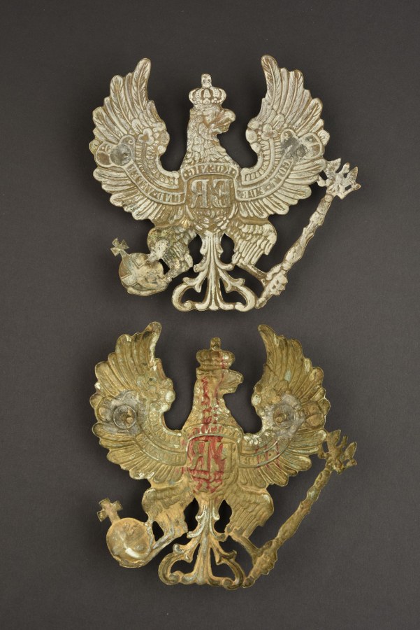 Ensemble de 2 plaques prussiennes modèle 1871 laiton et maillechort Plaque prussiennes modèle 1871. Une en laiton avec ses fixations par vis. La seconde en maillechort, fixations manquantes. Plus de photos sur WWW.AIOLFI.COM, more photos on WWW.AIOLFI.COM.