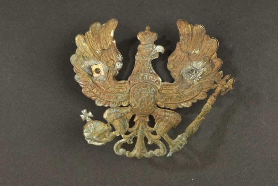 Plaque de casque à pointe modèle 1891 des vieux régiments Plaque modèle 1891 fixation par vis fendues, avec monogramme FWR dite des vieux régiments, utilisée pour les Grenadiers avant 1897 et certains régiments d'artillerie. Plus de photos sur WWW.AIOLFI.COM, more photos on WWW.AIOLFI.COM.