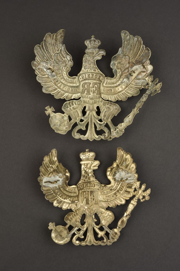 Duo de plaques prussiennes maillechort Pionnier et Jäger Une très belle plaque troupe en maillechort pour Pionnier, modèle 1895 avec ses pontets soudés d'origine, et une belle plaque de Chasseur à Pied pour Tschako modèle 1895, en maillechort avec ses pontets soudés d'origine. Plus de photos sur WWW.AIOLFI.COM, more photos on WWW.AIOLFI.COM.