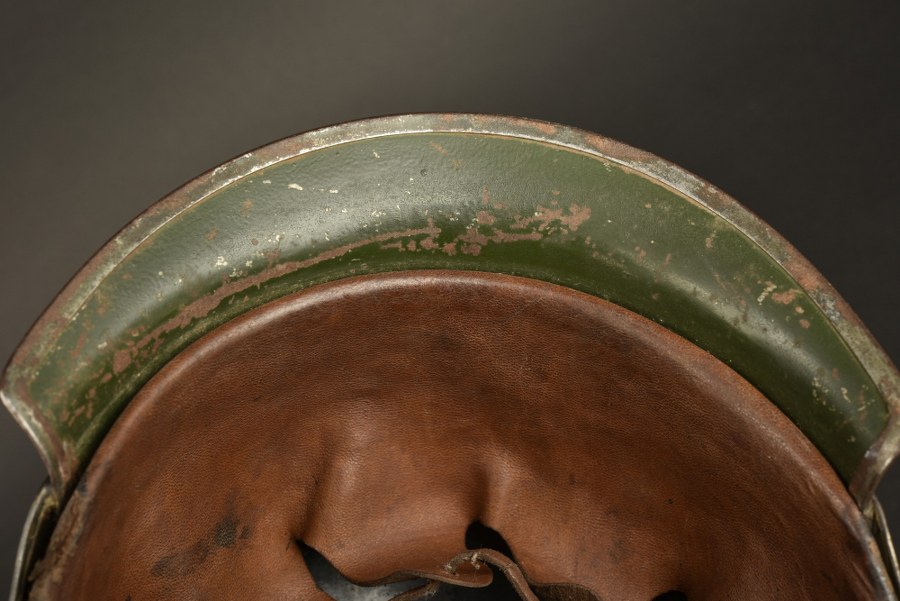 Casque à pointe de Chasseur à Cheval modèle 1915 Casque à pointe de Jäger zu Pferde modèle 1915 en fer. Avec sa bonne pointe haute à baïonnette. Bonnes cocardes et bonne jugulaire cuir à grosses clés modèle 15 de cavalerie. Bombe du fabricant Israël datée 1915. Coiffe en cuir fauve. Un casque dans son jus. Plus de photos sur WWW.AIOLFI.COM, more photos on WWW.AIOLFI.COM.