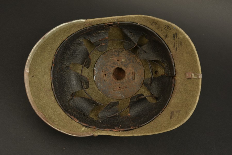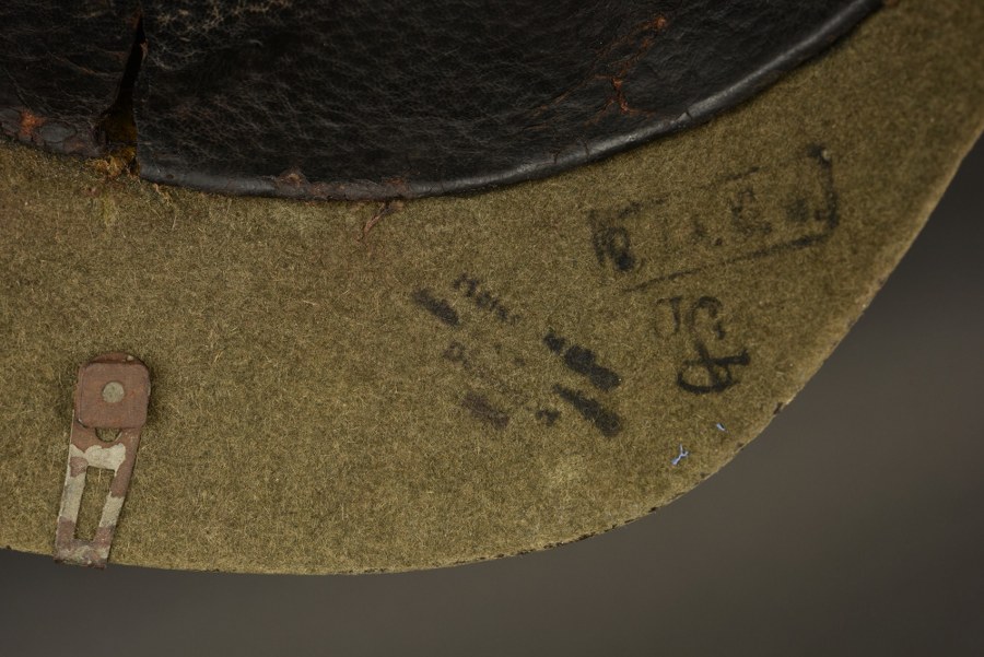 Casque à pointe ersatz modèle 1915 en feutre Casque à pointe ersatz feutre troupe, toutes garnitures en fer peint modèle 1915. Pointe amovible à baïonnette. Bombe avec percements de fixation de plaque ajustés et élargis. Bonne plaque modèle 15 à pontets. Bonne Reichskokarde, Landkokarde sans garantie. Jugulaire en cuir surpiquée. Coiffe à dents de loup en cuir noir. Embase de pointe fixée d'origine. Un trou sur la visière pour accrocher le casque au mur. Marquages de taille, fabricant et réception, à l'encre, sur la nuquière. Plus de photos sur WWW.AIOLFI.COM, more photos on WWW.AIOLFI.COM.
