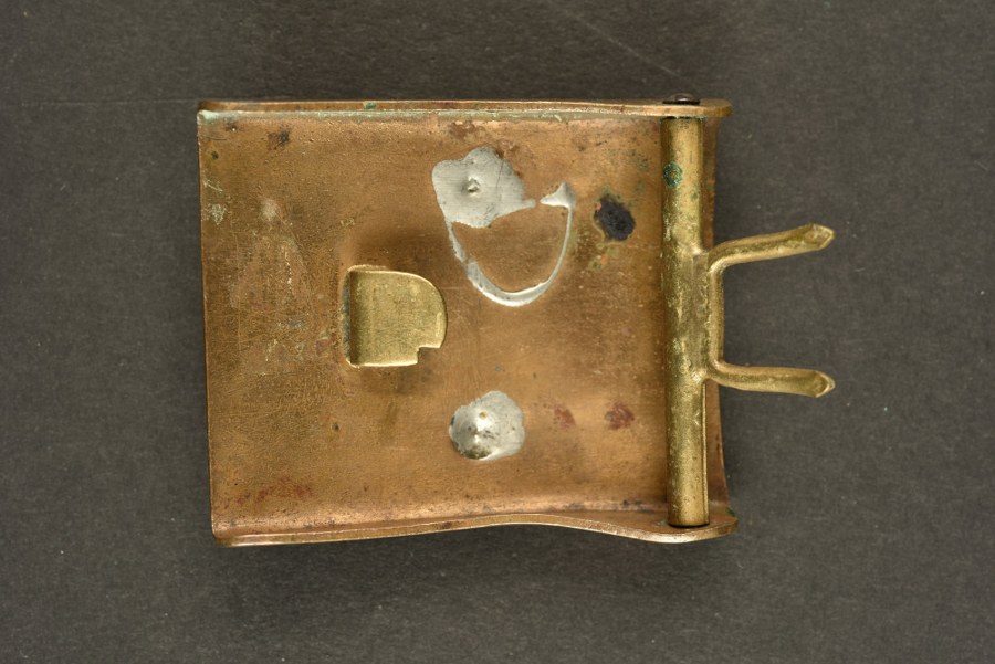 Boucle de ceinturon du Württemberg modèle 1895 Boucle de ceinturon modèle 1895 en cuivre rouge ou tombac avec macaron central aux armes du Württemberg et portant la devise Furchtlos und Trew. Plutôt une fabrication foyer. Soudures sans garanties. Plus de photos sur WWW.AIOLFI.COM, more photos on WWW.AIOLFI.COM.