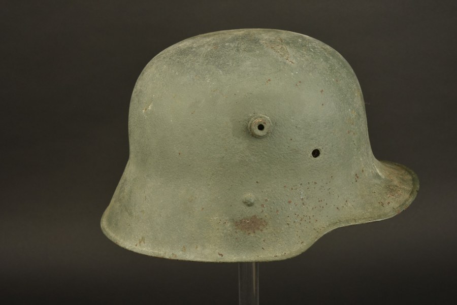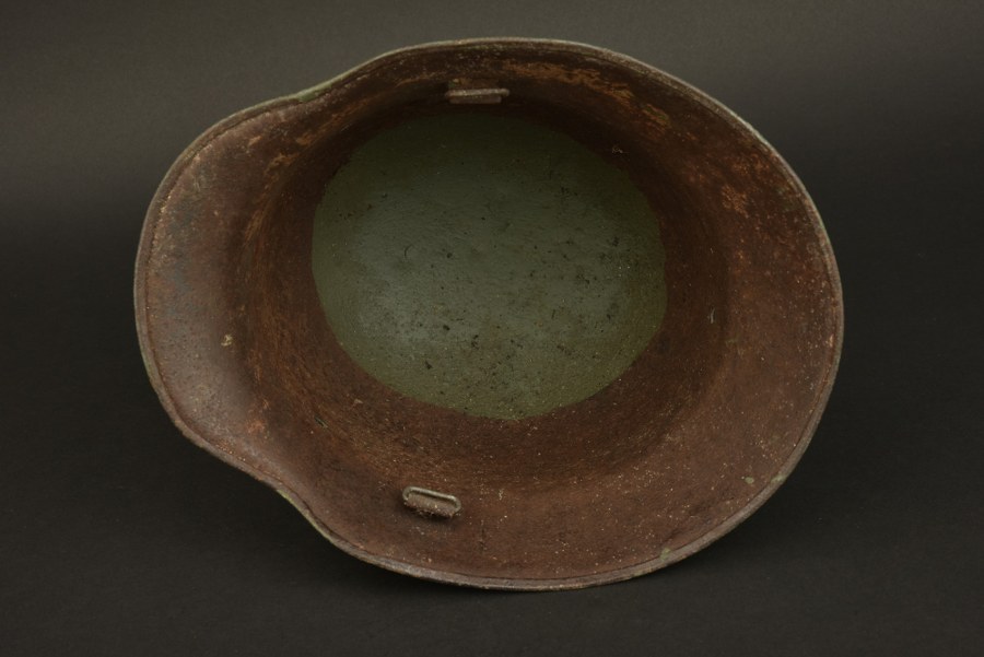 Coque de Stahlhelm Autrichien Coque de casque à boulons en acier, avec fixations de jugulaire par boucles, marquage W64. Coque saine, repeinte postérieurement. Plus de photos sur WWW.AIOLFI.COM, more photos on WWW.AIOLFI.COM.