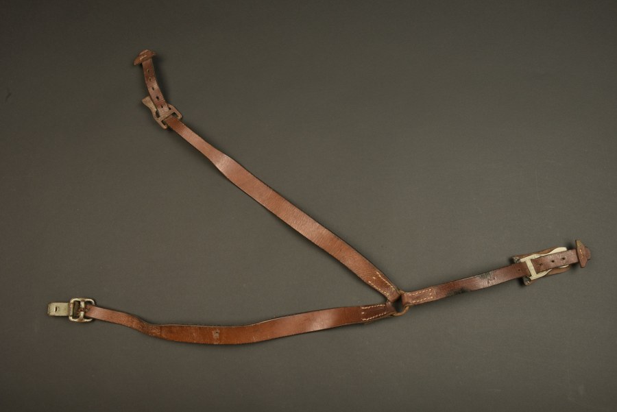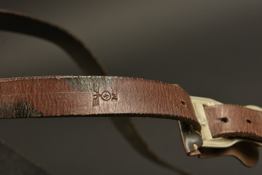 Brelage léger Kriegsmarine. En cuir noir, toutes les pièces métalliques sont présentes, mais oxydées. Fabrication Wersa München 1941, tampon M avec aigle présent. A noter une certaine usure et patine de la pièce. Etat II+. Plus de photos sur WWW.AIOLFI.COM, more photos on WWW.AIOLFI.COM.