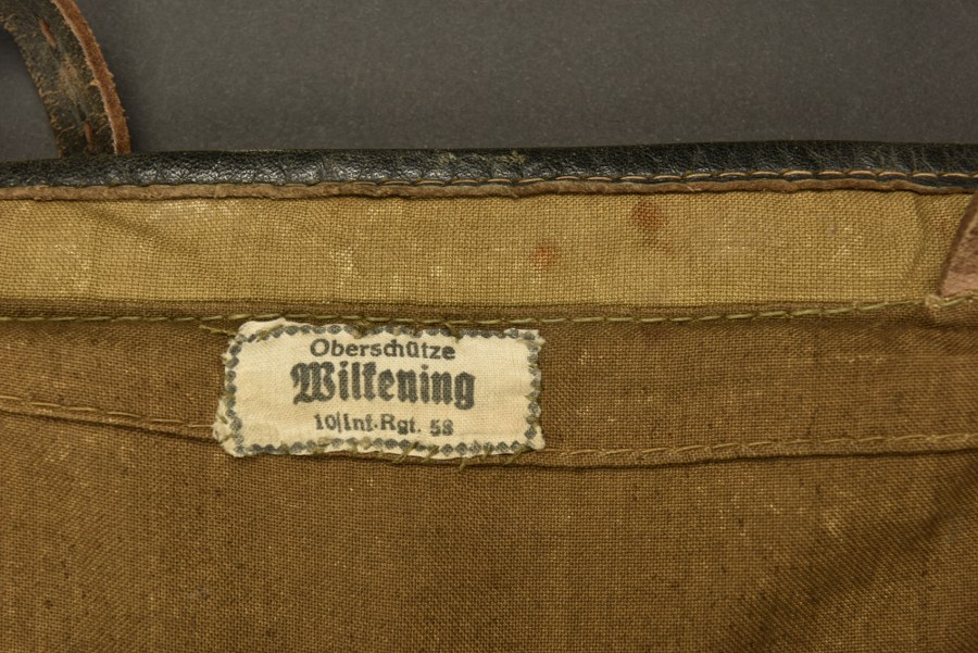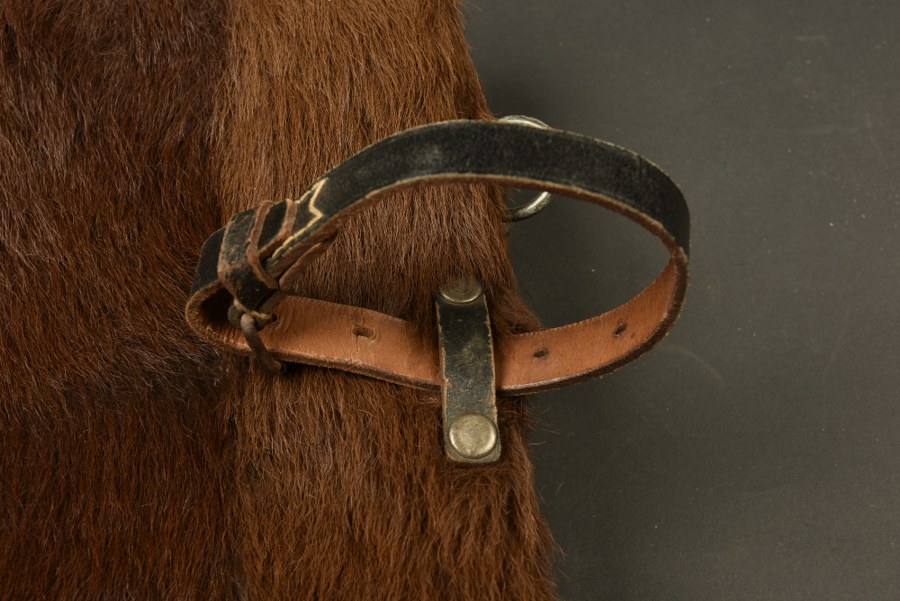 Sac à dos poils de vache. En forte toile coton Feldgrau. Poils de vache marron. Toutes les sangles sont présentes, ainsi que toutes les pièces métalliques. Les bretelles sont manquantes. Indication nominative Uffz Schwarz. Marquages RBNr 0/0676/0039. A noter une certaine usure et patine de la pièce. Etat II. Plus de photos sur WWW.AIOLFI.COM, more photos on WWW.AIOLFI.COM.