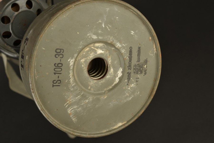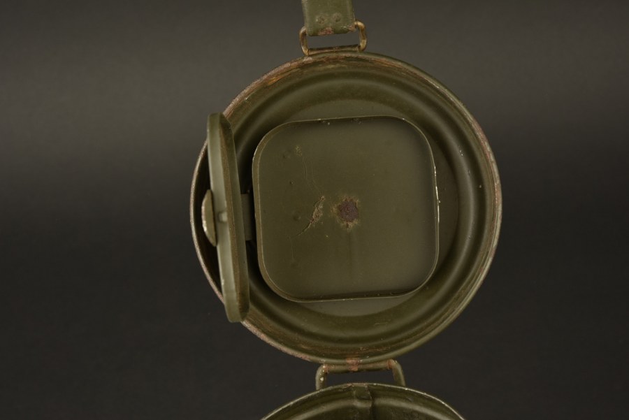 Masque anti-gaz allemand. Boitier long. Peinture Feldgrau à 60%. Seule la tirette est présente, cassée et recousue. Verres de rechange manquant. Masque anti-gaz polonais complet, filtre présent. Daté mars 1939. Selon les informations du vendeur cette pièce provient de Couthenans, où étaient stationnées des troupes de volontaires de l'est. A noter une certaine usure et oxydation de la pièce. Etat II+. Plus de photos sur WWW.AIOLFI.COM, more photos on WWW.AIOLFI.COM.