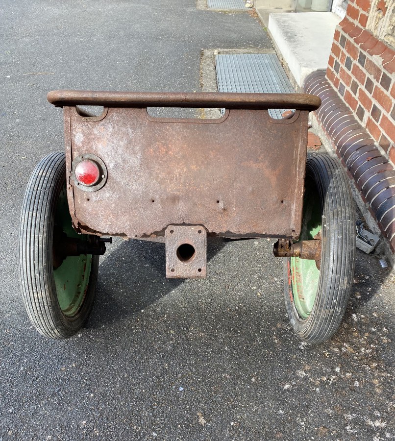 Remorque IF8. Caisse en métal, fortement oxydée. Nombreux manques et trous d'oxydation. Timon présent. Roues pleines, repeintes. Des boulons de fixation sont manquants. Pneus continental. Marquage 914 44, code fabricant illisible. trace de peinture jaune sable d'origine à 20%. Fond de la caisse fortement oxydée et fragilisé, nombreux manques. Attache remorque présent. A noter une certaine usure et oxydation de la pièce. Etat II+. Plus de photos sur WWW.AIOLFI.COM, more photos on WWW.AIOLFI.COM.