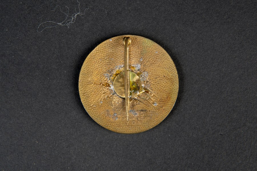 Un insigne de béret du Groupement 26 en métal émaillé de 40mm, Groupe 7 de fabrication Augis, a noter un éclat dans le bandeau, un autre dans au niveau de l'œil, l'épingle n'est pas d'origine et recollée mais aussi accidentée. Le Groupement 26 dit Le Camp-des-maréchaux et Les Loups était situé à Saint-Gaudens (Haute Garonne) puis à Sauveterre-de-Comminges (Haute Garonne). Provenance collection Christian Cournol.