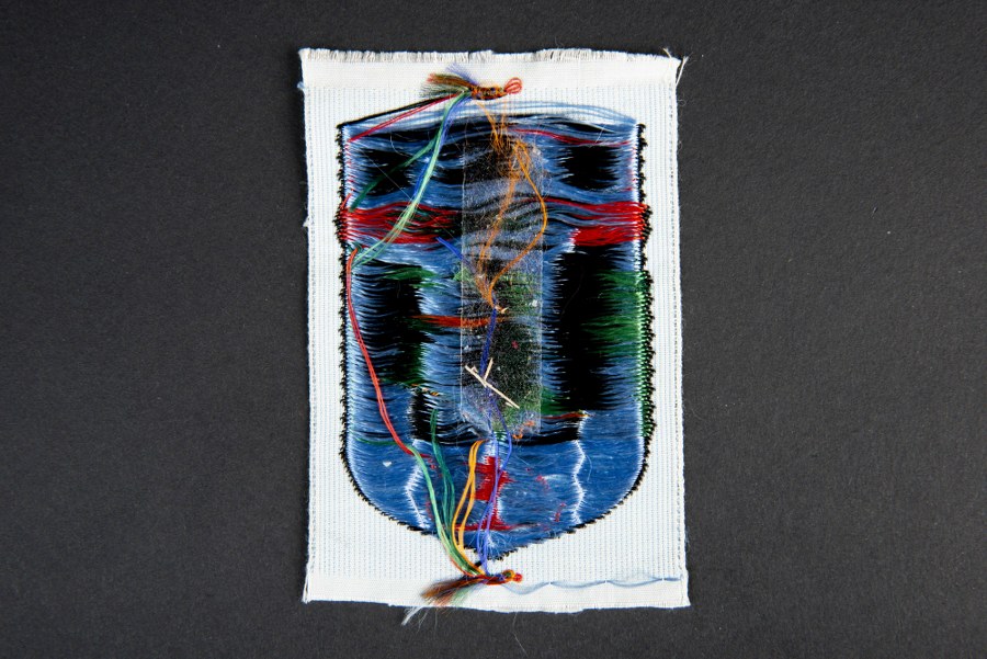 Lot de 2 insignes 2ème modèle du Groupement 33 comprenant, un insigne en tissus du Groupe de direction sur fond blanc, un insigne en tissus du 1er Groupe sur fond bleu. Le Groupement 33 dit Le-Ventoux était situé à Nyons (Drôme) puis à Lussolle (Landes). Provenance collection Christian Cournol.