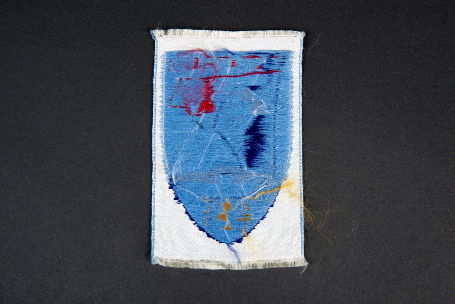 Lot de 2 insignes du 3ème modèle du Groupement 33 comprenant, un insigne tissus du Groupe de direction sur fond blanc, un insigne tissus du 1er Groupe sur fond bleu. Le Groupement 33 dit Le-Ventoux était situé à Nyons (Drôme) puis à Lussolle (Landes). Provenance collection Christian Cournol.