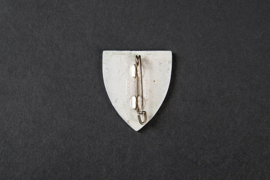 Un insigne du Groupement 33 du Groupe 7 avec cartouche en violet, en aluminium peint de fabrication Augis. Le Groupement 33 dit Le-Ventoux était situé à Nyons (Drôme) puis à Lussolle (Landes). Provenance collection Christian Cournol.