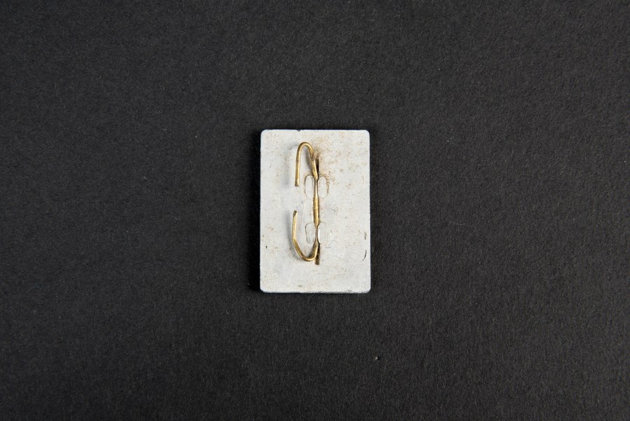 Un insigne général des Chantiers de la jeunesse, un insigne d'essaie des Chantiers modèle en aluminium peint sans marquage fabricant et épingle de fixation artisanale, de dimensions 2x3cm. Provenance collection Christian Cournol.