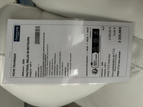 Fauteuil Relax Bi-moteurs Château d'Ax [VOIR FICHE TECHNIQUE en photo] (ref 3559)