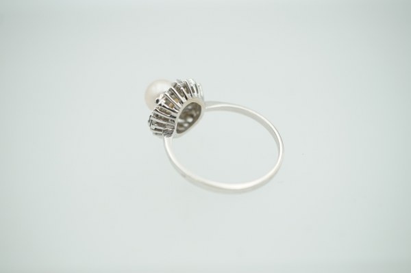 Bague en or blanc (750°°°) sertie en son centre d'une perle de culture. Poids: 3,3 gr.