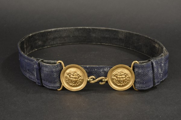 Ensemble d'un colonel du 62ème RI. Bandeau noir et plateau garance, chiffre brodé en cannetille doré, galons dorés de colonel cousus d'origine. Fausse jugulaire dorée retenue par deux boutons aux armes d'infanterie. Bandeau intérieur en cuir noir légèrement accidenté sur 5cm à l'avant. Doublure en satinette noire. On y joint un ceinturon modèle 1931 bleu, plateaux à têtes de méduse. Etat II+