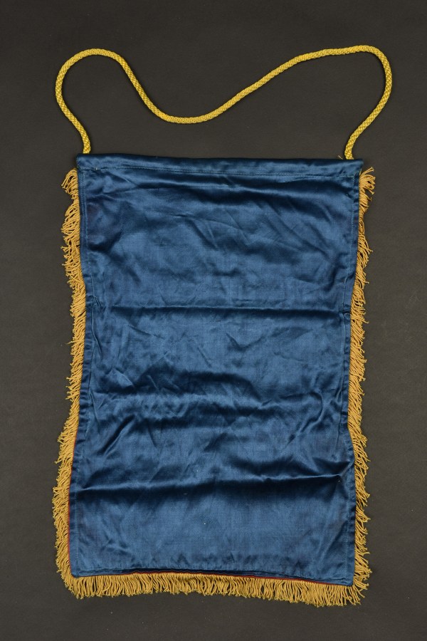 Fanion tricolore double face en soie. Sur une seule face se trouve brodée au fil de coton noir une francisque surmontant deux gerbes de blé. Cette symbolique est caractéristique des Centres de Jeunesse que l'on retrouve sur les insignes des Fermes écoles mais aussi des centres de formations liés à l'apprentissage des grands travaux agricoles .39cmx25cm hors franges. II+
