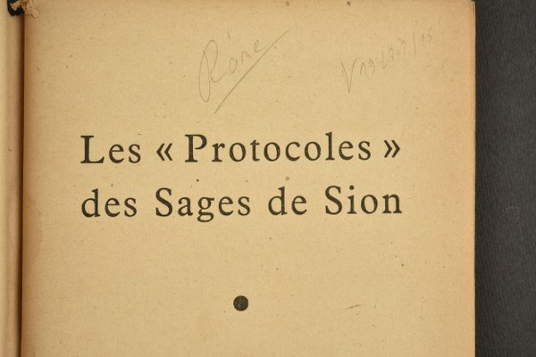 lot comprenant 2 exemplaires originaux des "protocoles des Sages de Sion", comprenant un exemplaire aux éditions C.E.A à Paris en 1943 de 95 pages et un exemplaire avec couverture cartonnée aux éditions Bernard Grasset en 1936, complet 153 pages. II+