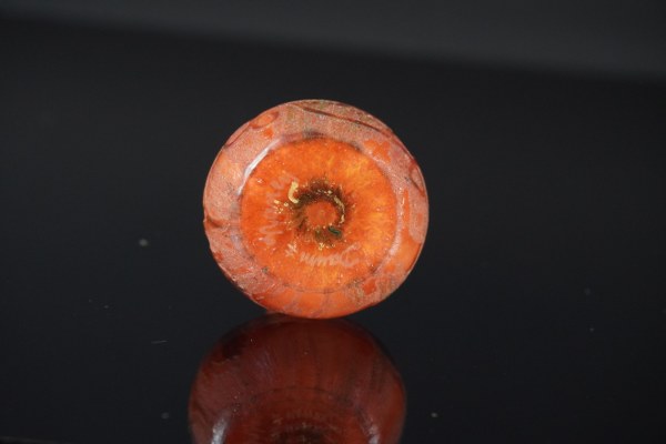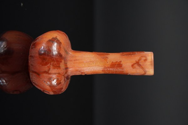 DAUM Nancy. Rare vase soliflore miniature en marqueterie de verre à décor floral et application à chaud d'un scarabée. Signé sous la base à la pointe DAUM Nancy & croix de Lorraine. Vers 1900. Hauteur : 6 cm. Diamètre : 3 cm.