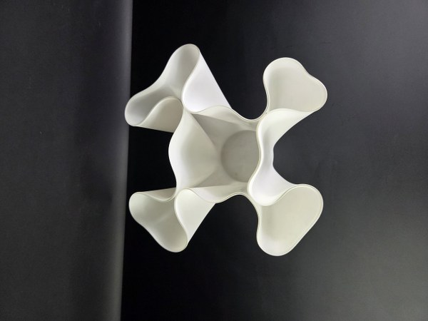 D'après Pietro CHIESA (1892-1948). Vase "Cartoccio" en verre blanc mat. Hauteur : 23 cm. Longueur : 34 cm. Largeur : 32 cm.