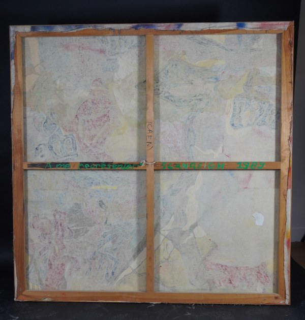 Jean-Marc SCANREIGH (né en 1950). A me représenter. Technique mixte sur toile. Monogrammée et datée 1989. Contresignée, titrée, située Caen au dos. 150 x 151 cm.