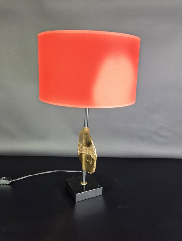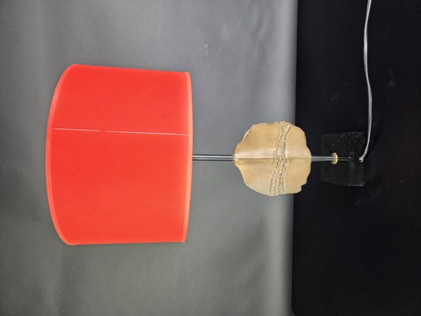 Michel JAUBERT (né en 1946). Pied de lampe en bronze patiné doré sur un socle carré en résine noire, signé. Hauteur totale : 47 cm. Diamètre : 29 cm.