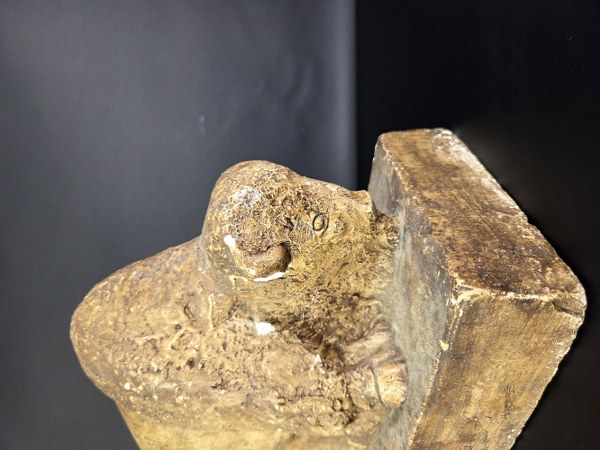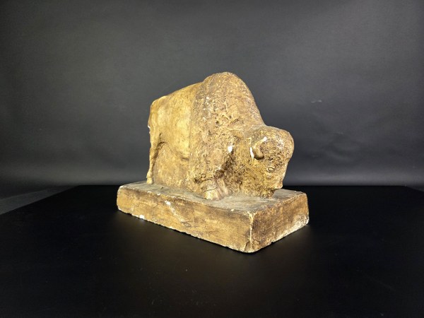 Travail 1930. Bison. Plâtre d'atelier patiné brun. Hauteur : 28 cm. Longueur : 35 cm. Largeur : 18 cm. Quelques chocs.