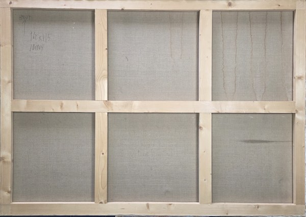 Jean DUPUY (1925 - 2021). Composition vers 1965. Huile sur toile signée au dos. 115 x 162 cm. Traces d'humidité.
