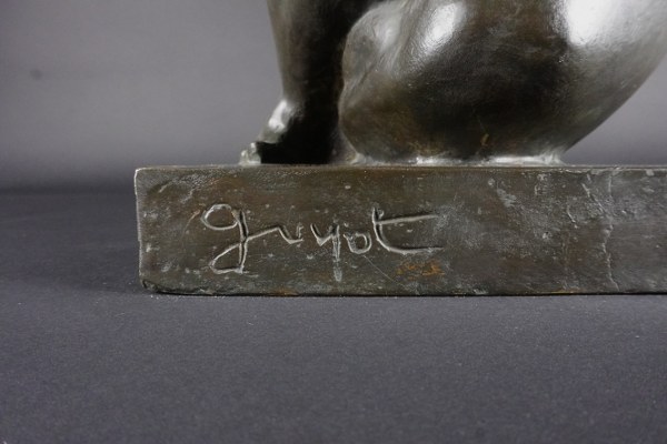 Georges Lucien GUYOT (1885-1972). Femme nue assise. Épreuve en bronze à patine brune nuancée. Fonte signée sur la terrasse. Vers 1930. Hauteur : 56 cm. Profondeur : 28.5 cm.