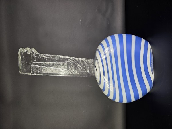 Nicolas MORIN (1959). Sculpture en verre incolore et opaque blanc et bleu représentant un marin stylisé. Signée et porte le numéro 1012. 52,5 x 25,5cm.