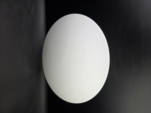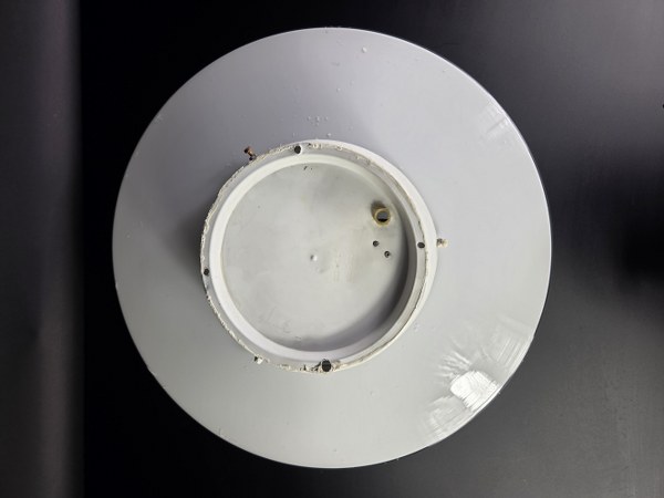 Arne JACOBSEN (1902-1971) & Louis POULSEN éditeur. Applique "Eklipta 450". Opaline blanche et aluminium laqué. Vers 1955. Hauteur 13 cm. Diamètre 45 cm. Base relaquée.