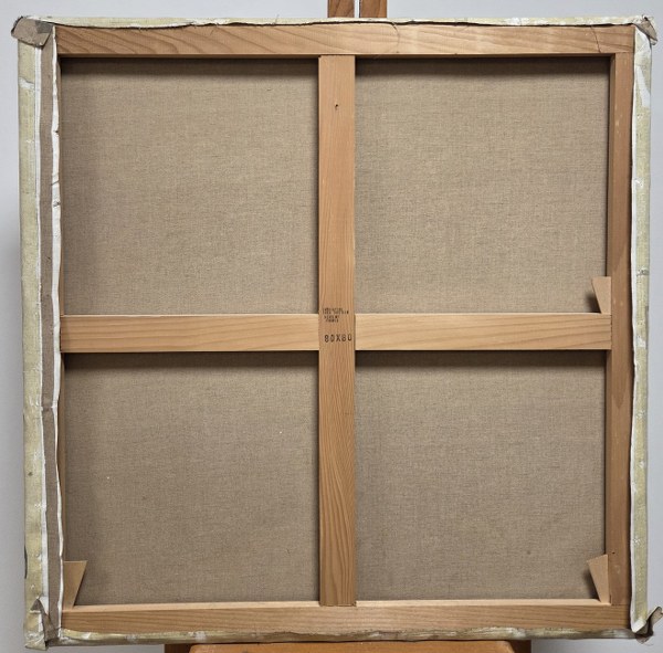 Gérard TISSERAND (1934-2010). Composition au portrait dans la boîte de sardines. Huile sur toile signée en bas à droite et datée 1972. 80 x 80 cm.