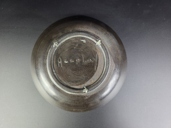 ACCOLAY (XXèmesiècle). Suite de sept assiettes creuses émaillées noir à décor de visage et gazelle. Signées. Hauteur : 3 cm. Diamètre : 17,5 cm.