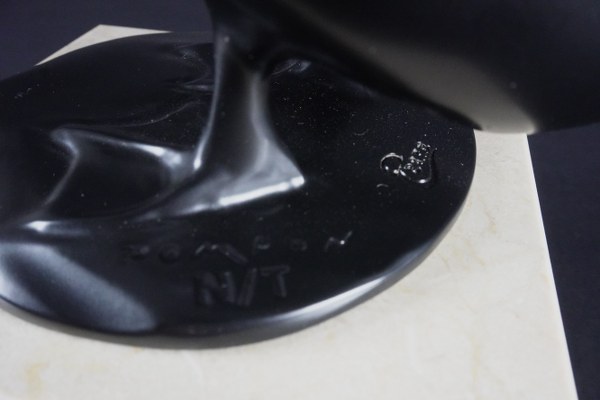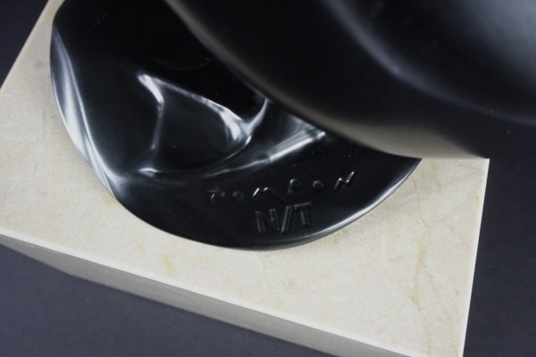 D'après François POMPON (1855-1933). Canard. Épreuve en bronze à patine noire, signée et numérotée N/T, fonte posthume, cachet de fondeur Ebano. Hauteur : 23 cm. Longueur : 18 cm. Hauteur totale avec marbre : 33 cm.