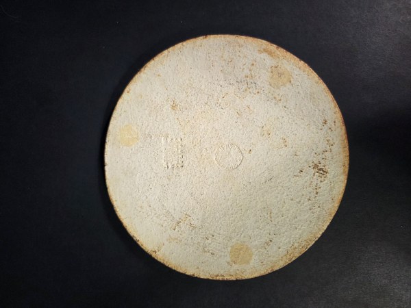 Jacotte CAPRON (née en 1925). Plaque circulaire en céramique à décor d'un coq stylisé. Cachet en creux au dos. Vers 1970. Diamètre : 18 cm.