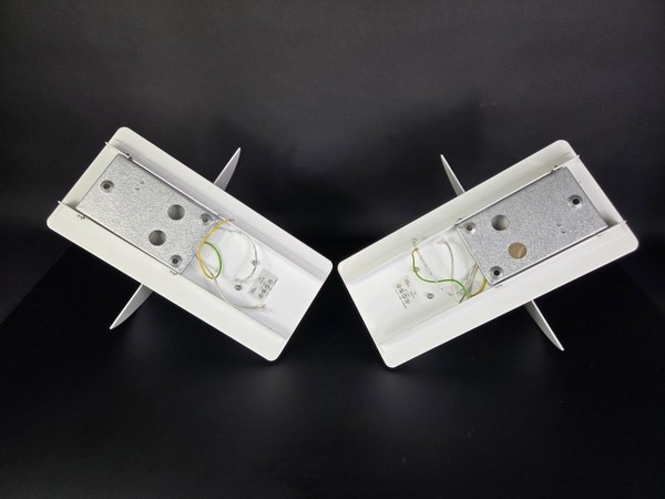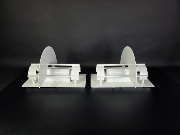 Joachim LEPPER (XXème siècle) et Louis POULSEN éditeur. Paire d'appliques, modèle Saturn en métal laqué blanc. Hauteur : 34 cm. Longueur : 31 cm. Largeur : 22 cm.