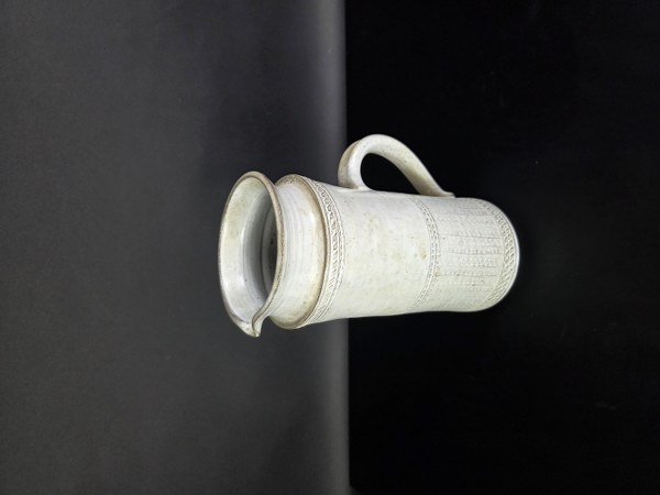 Roger COLLET (1933-2008). Pichet cylindrique en grès émaillé à décor incisé. Signé sous la pièce. Hauteur : 25 cm. Diamètre : 12 cm.