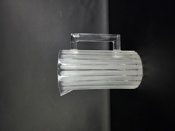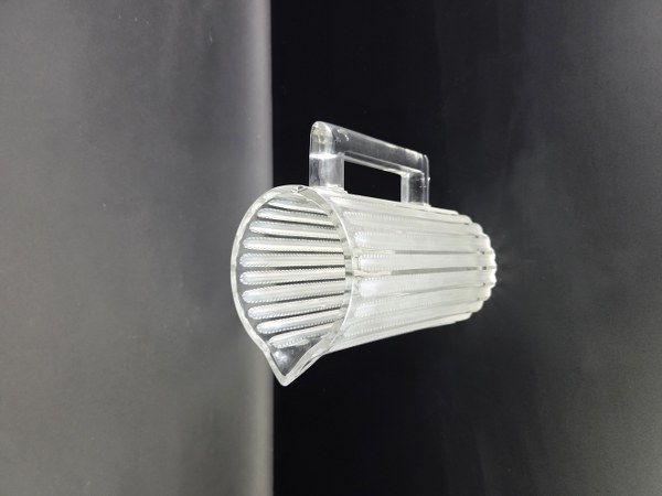 LALIQUE FRANCE (1860-1945). Pichet à orangeade modèle « Jaffa ». Épreuve de tirage industriel réalisée en verre blanc moulé-pressé. Signé Lalique France à la pointe. Hauteur : 22,5 cm. Longueur : 18,5 cm. Largeur : 12 cm.